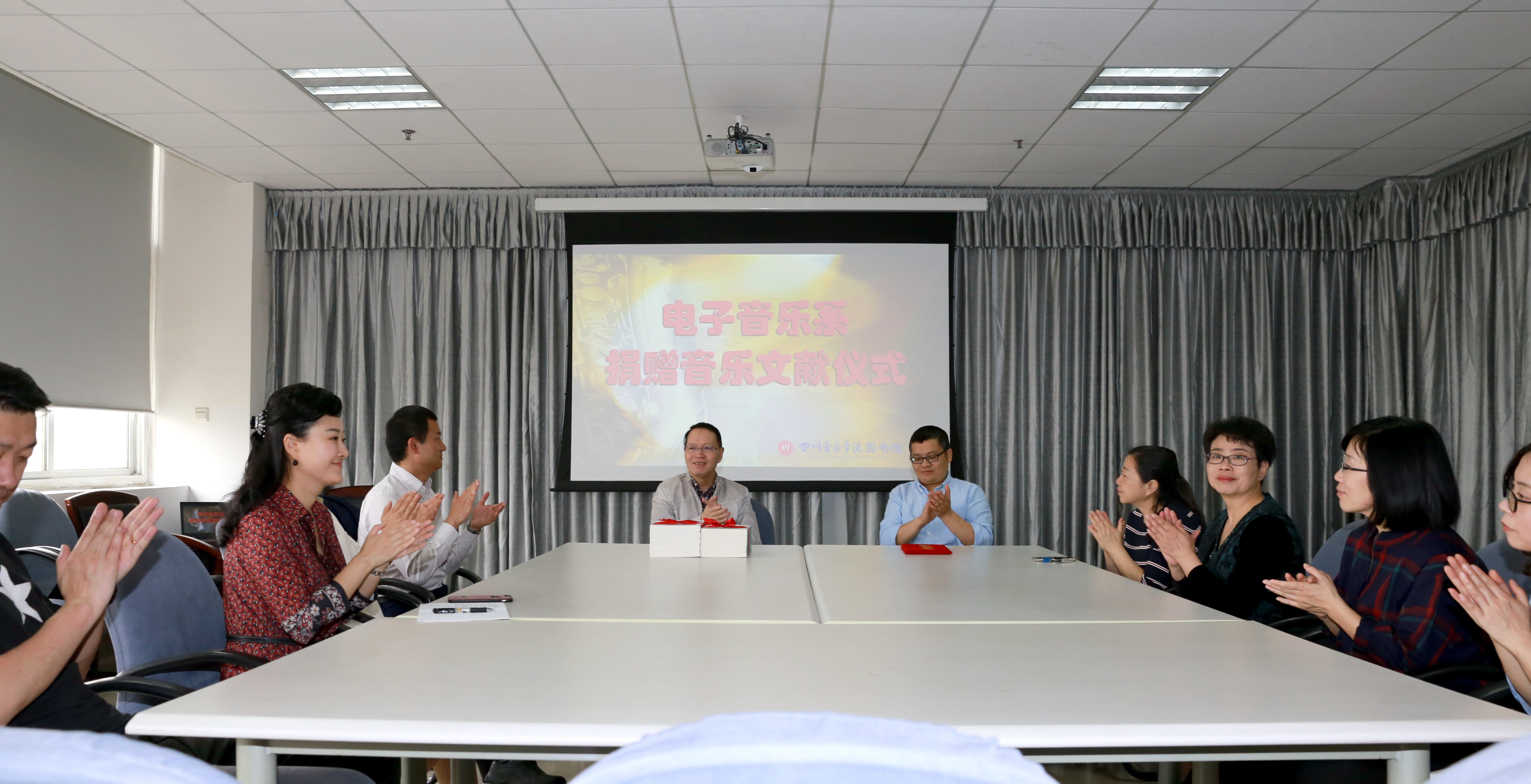 最后,宋馆长代表图书馆接受捐赠,胡主任代表电子音乐系接受“捐赠证书”,双方合影留念。